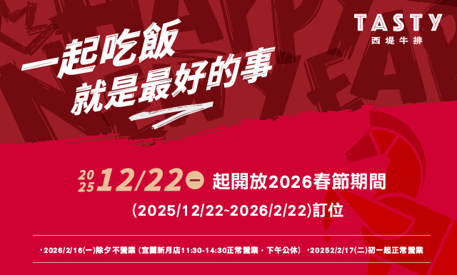 【春節期間訂位公告】 🍴2025/12/22起開放2026年春節期間訂位:2025/12/22(一)~2026/2/22(日) 2026/1/23(五)起,維持開放「一個月內」的訂位 例如:預訂2026/2/23(一)用餐,請於2026/1/23(五)後進行訂位~ 👉 提早預約值得歡聚的西堤時刻:https://wowfoods.cc/reserve_tasty